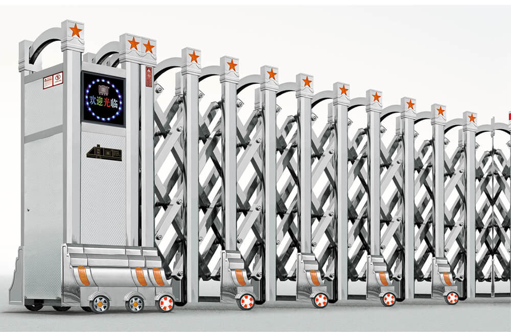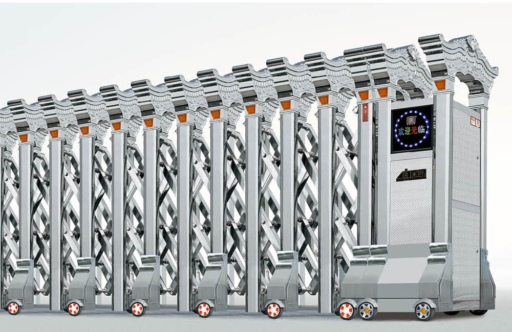 動伸縮門主要有伸縮門體、機(jī)頭、控制器三部分組成。
